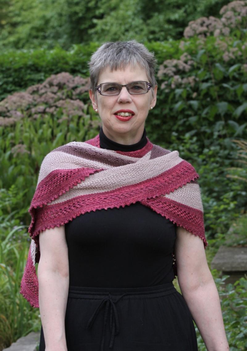 The picot bind-off will most likely require a few yards from the second skein of Colour A in the Marine Silk Sport (shown in rose shades); alternatively, you can use your favourite stretchy bind-off.
